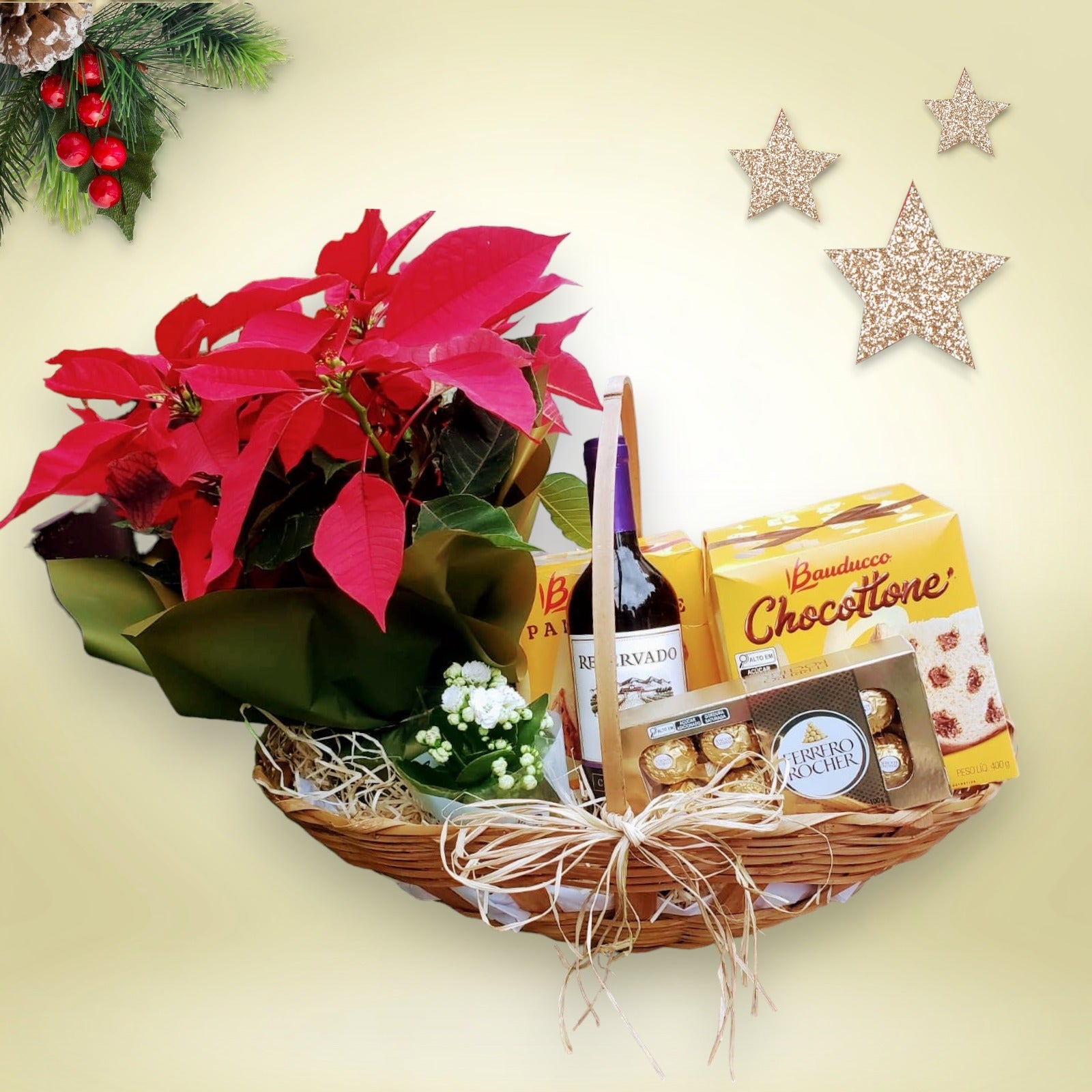 Cesta de presente com flores Premium Natal - Sodel Flores