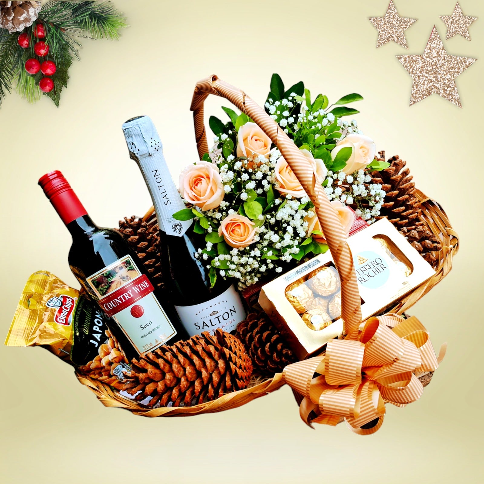 Cesta Premium c/ Rosas. Vinho e chocolate