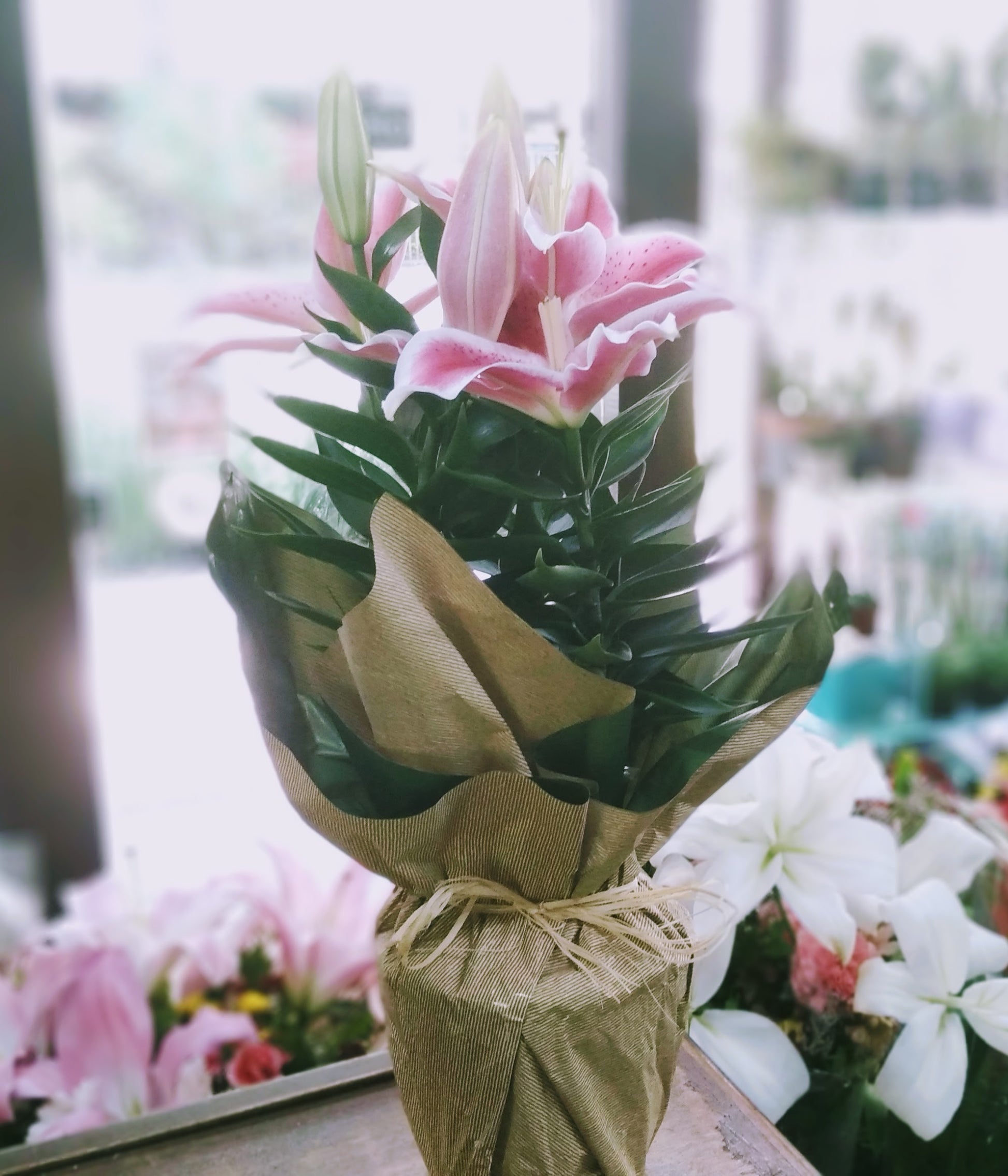 Lírio perfumados na cor rosa, plantados, tem em média 3 hastes, cada uma contendo em média 3 flores. Ele vem embalado para presente com papel de cor neutra e laço de raphis. Se desejar escrever um cartão, mande os dizeres para o nosso WhatsApp.